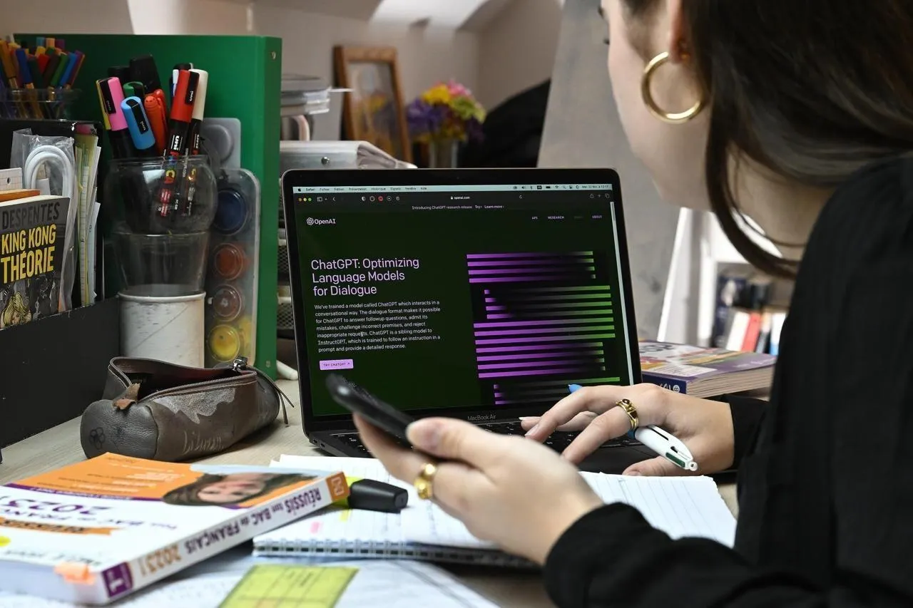 Une lycéenne prépare ses devoirs scolaires avec l’aide de l’intelligence artificielle ChatGPT installée sur son ordinateur © Vincent Michel/Ouest-France