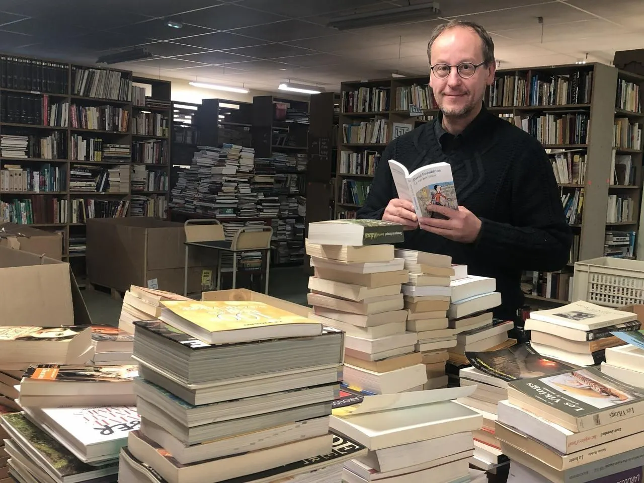 All Livres peut aussi s’appuyer sur un coup de pouce de la collectivité. Flers Agglo a mis à disposition un local ailleurs dans la ville pour délocaliser une partie des activités logistiques. Une aide précieuse pour cette structure qui récupère chaque jour près d’une tonne de livres et de papiers à trier, revendre ou recycler. Il faut pouvoir évacuer les volumes. On travaille avec des poids lourds et, avec les travaux, ils ne pouvaient plus passer