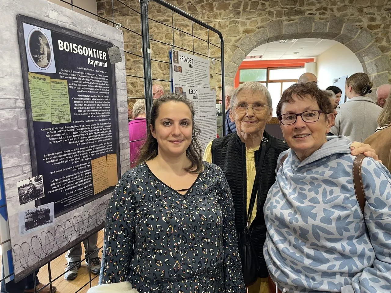 Devant le panneau consacré à Raymond Boisgontier, sa fille Nicole Delarue née Boisgontier, est entourée de Louise (à gauche) et Dominique Malfilâtre, arrière-petite fille et petite-fille de Raymond. © Ouest-France