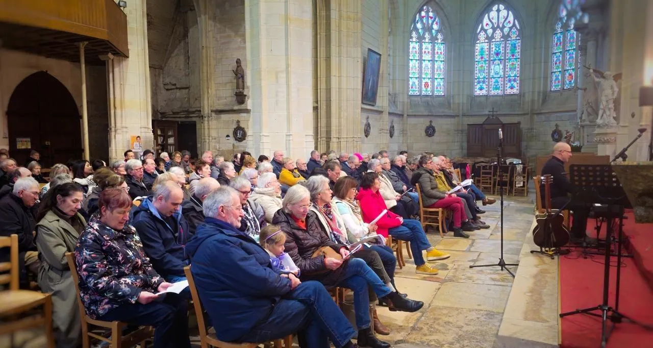 Moment fort du concert de dimanche, le Minuit, chrétien repris en chœur par la centaine de spectateurs. Autre point culminant, la chanson originale Noël sans toit, écrite par Brigitte Desbois et mise en musique par Geoffrey. Brigitte en explique le texte : « Inspirée par la résilience des réfugiés ukrainiens, elle rappelle que Noël n’est pas que joie, mais aussi partage et solidarité. » Les choristes ont donc offert au public deux heures d’émotion.