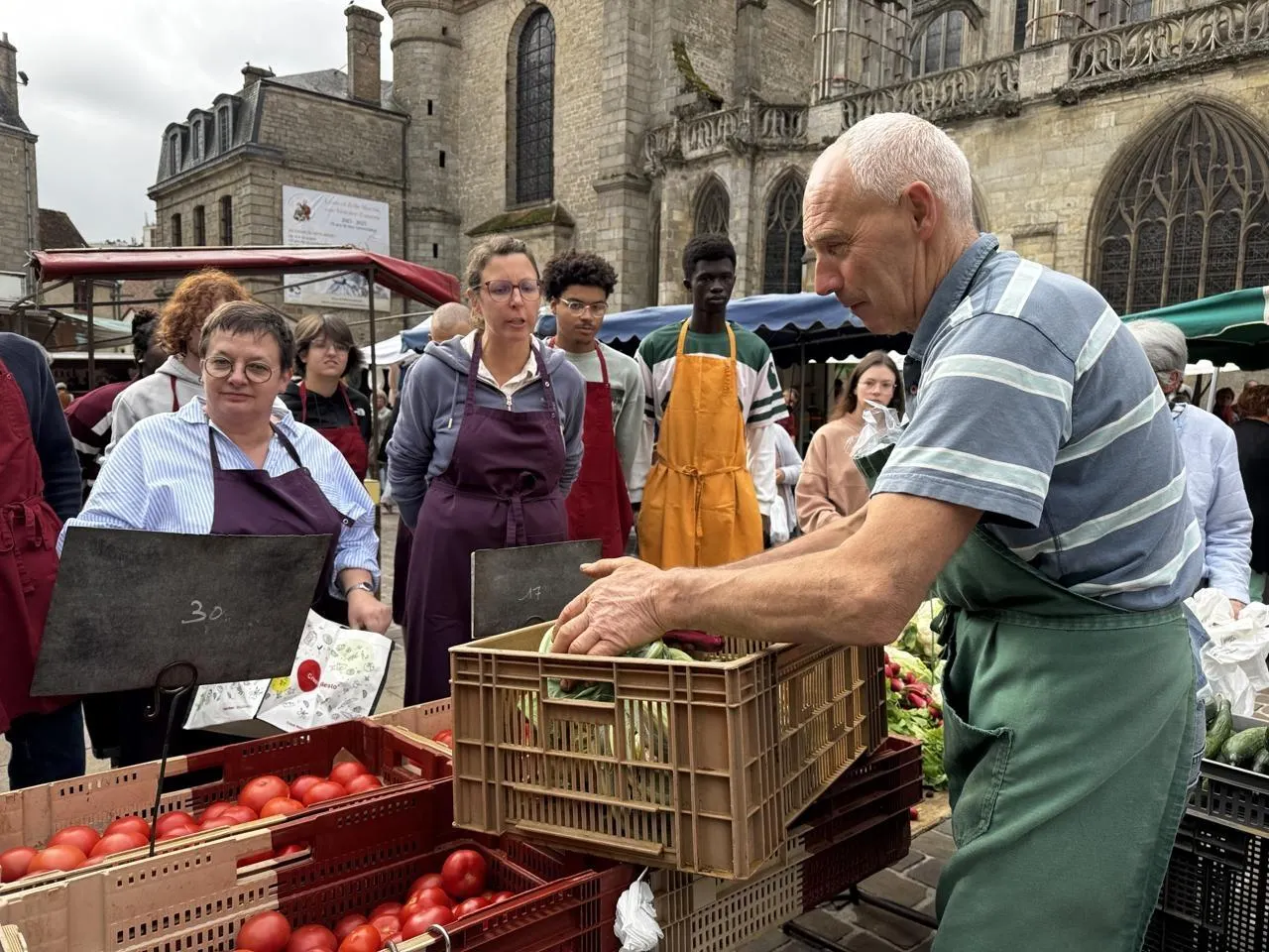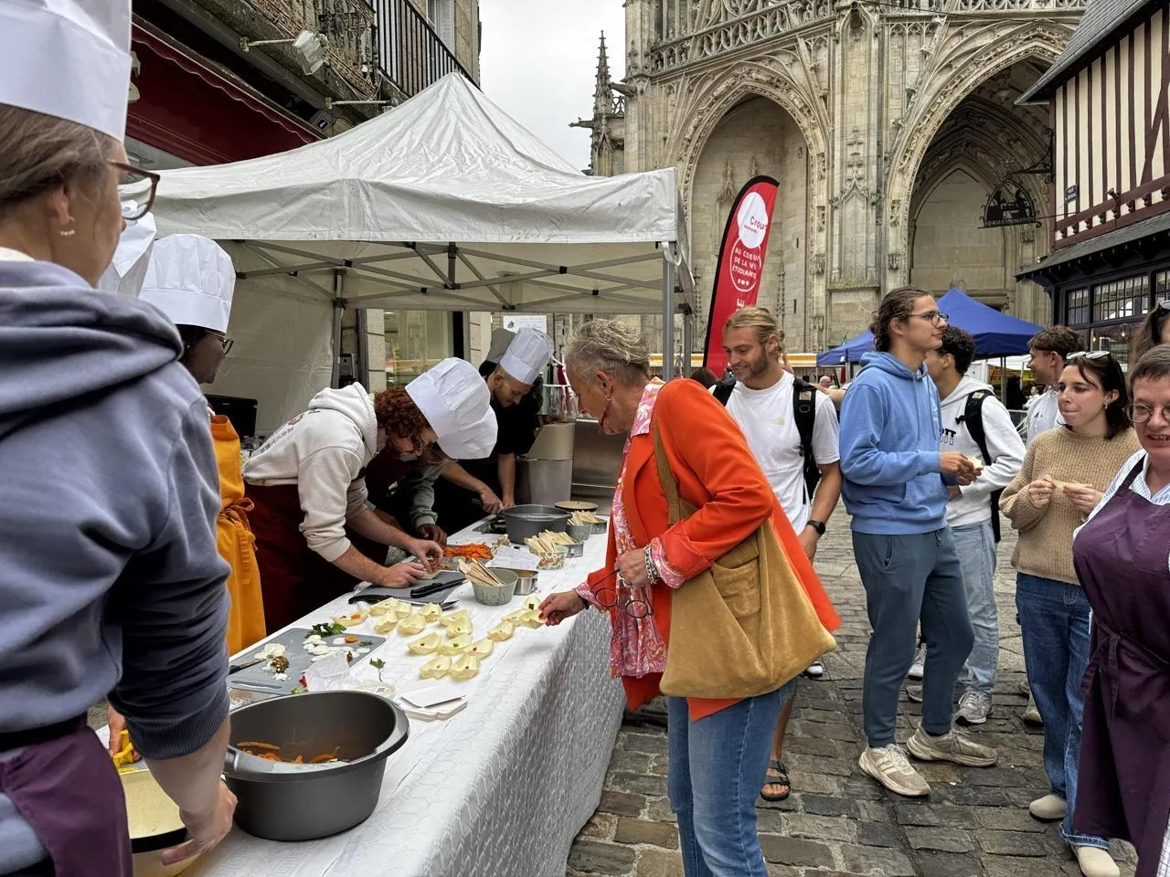 Au marché d’Alençon (Orne), ce jeudi 18 septembre 2025, une dizaine d’étudiants ont participé à un atelier culinaire organisé par le Crous. Objectif : cuisiner avec des produits locaux et peu d’argent, créer du lien et lutter contre la précarité étudiante.