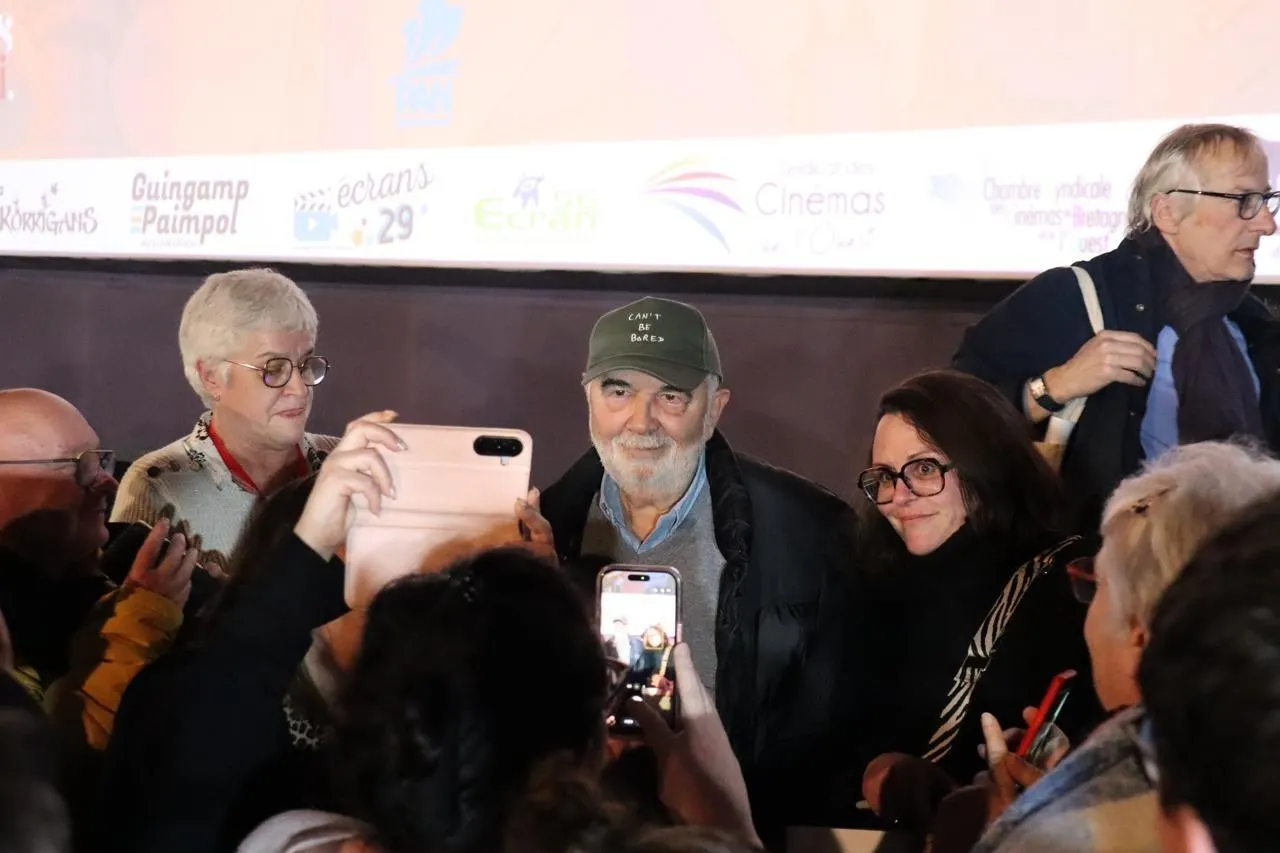 Juste avant son départ, Gérard Jugnot a eu beaucoup de succès auprès des personnes présentes dans la salle de cinéma des Korrigans, à Guingamp, ce jeudi 29 janvier 2026. © Ouest-France