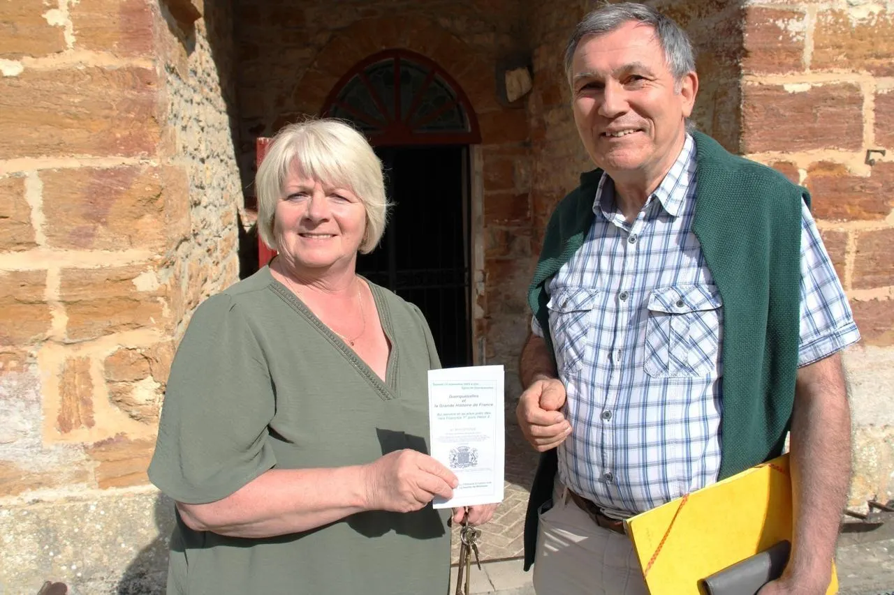 Bruno Gérard, aux côtés de la maire de Guerquesalles (Orne), Agnès Laigre, interviendra pour le 5e et dernier épisode de cette saga familiale qui lui a réservé bien des surprises. © Ouest-France