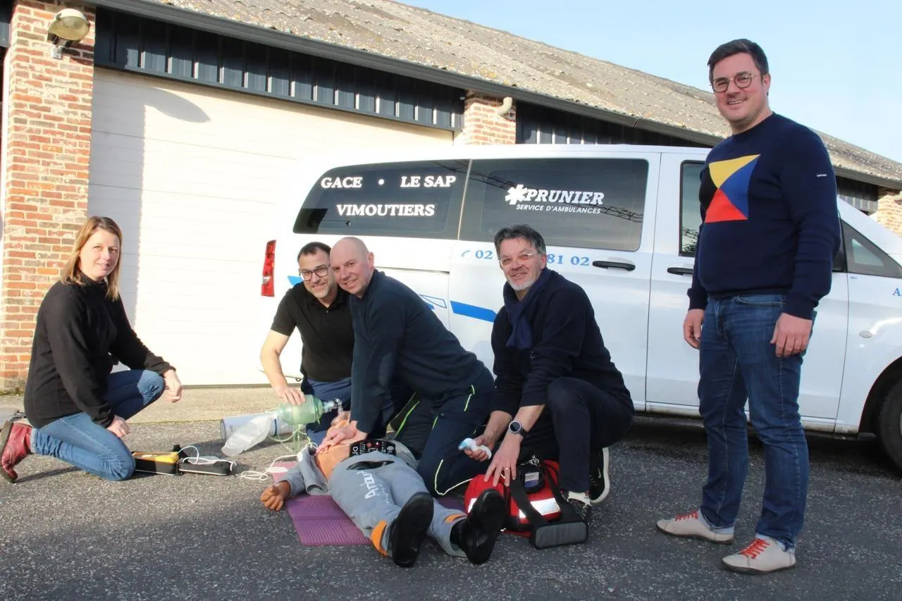 Julien Prunier, le gérant (à droite), aux côtés de salariés qui suivent une formation aux Gestes et Soins d’urgence. © Ouest-France