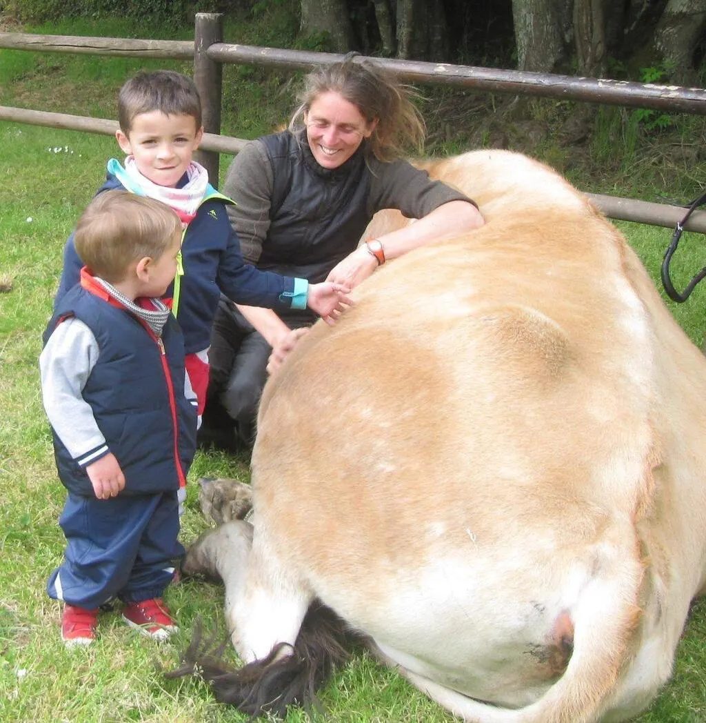Première sortie d' Ibull, boeuf jersiais, âgé de 7 ans, qui se prête à l’approche caressante des enfants, premier contact avant de se lancer dans l’aventure. © Ouest-France