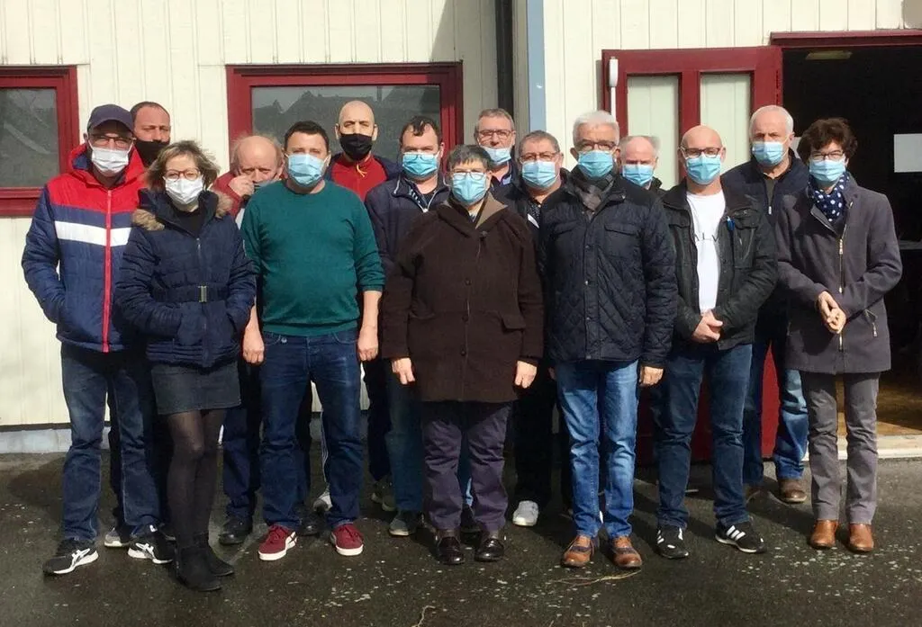 Samedi 13 mars 2021, autour du président et du maire de Sainte-Gauburge-Sainte-Colombe (Orne), le comité des fêtes reste plus que jamais mobilisé. © Ouest-France