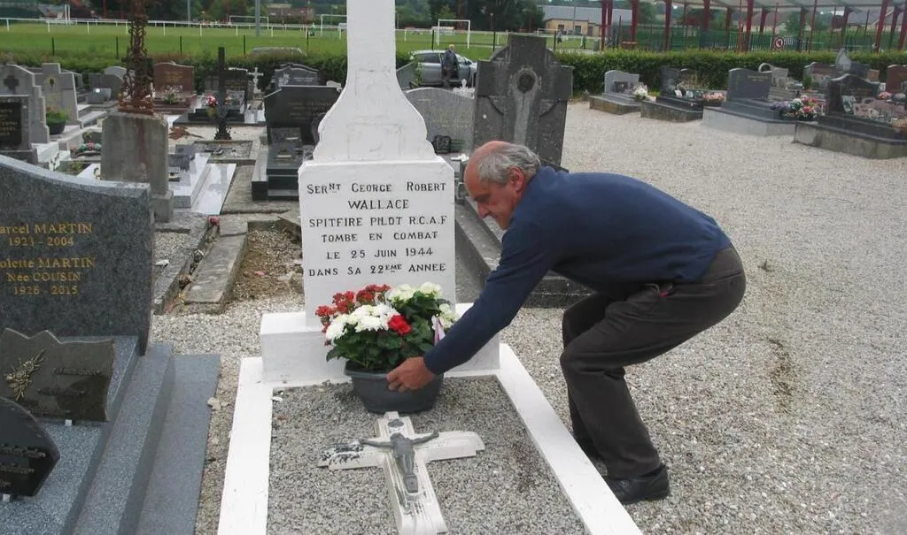 Le sergent canadien George-Robert Wallace, dont l’avion a été abattu, repose dans le cimetière de Sainte-Gauburge. Le 25 juin 44, quand son avion s’est écrasé, les habitants du village ont tout de suite décidé d’enterrer le jeune soldat dans le cimetière de la commune. « C’était notre souhait que Bob repose dans ce cimetière à jamais. Car les gens ici ont été gentils et ils ont promis de prendre soin de la tombe pour toujours », expliquait Parker Morton, membre de la famille de l’aviateur lors de sa venue, le 22 août 2017.