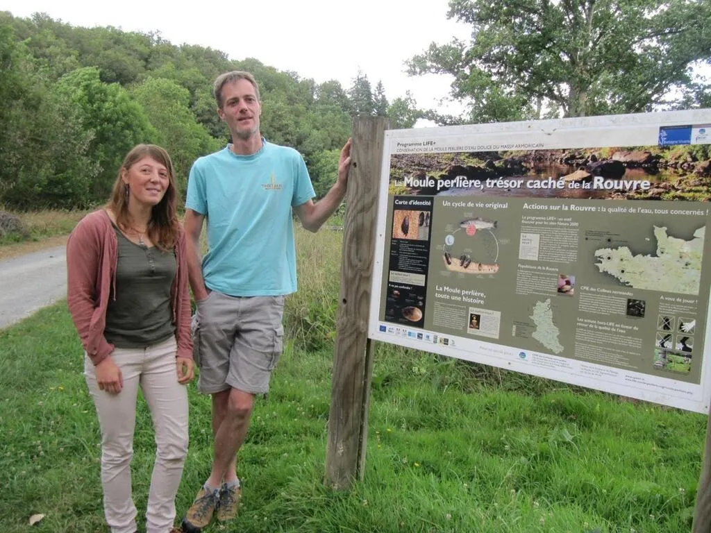 Julie et Johan près d’un panneau d’interprétation du type de ceux qu’ils sont amenés à réaliser ensemble. © Ouest-France