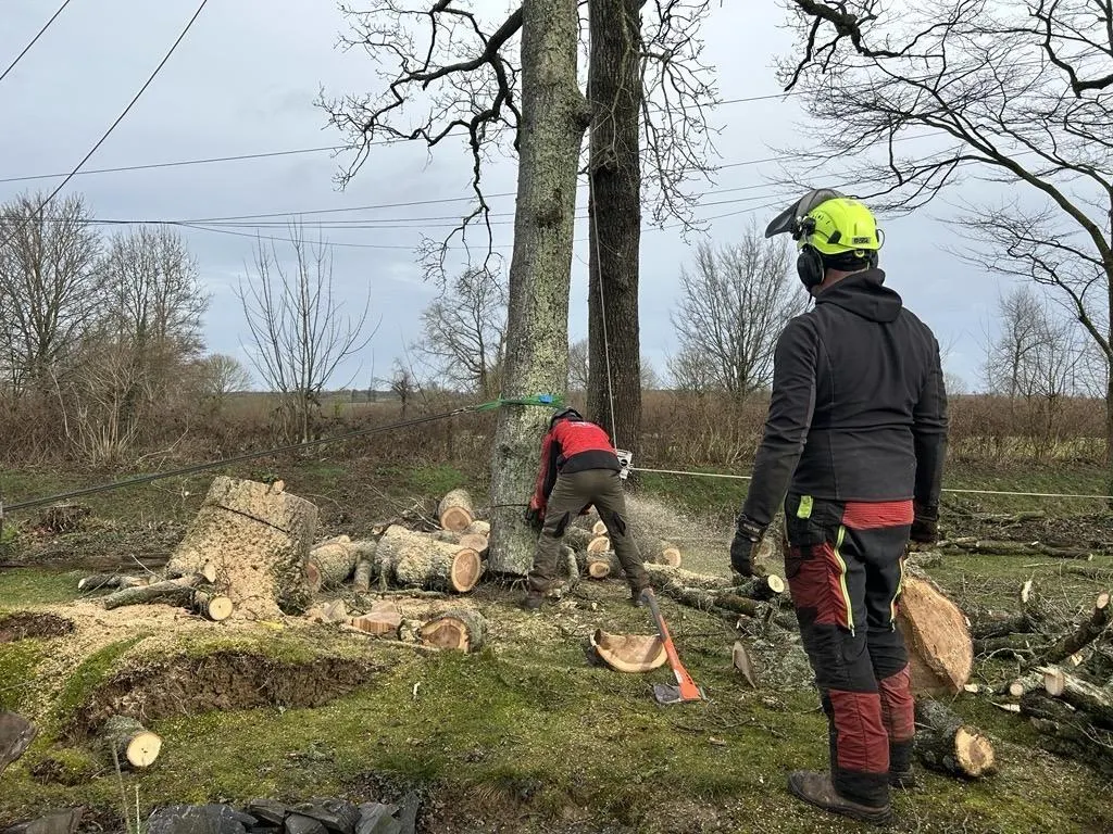 La tempête Goretti, qui a frappé la Manche début janvier, a laissé quelques dégâts, notamment des arbres déracinés par les vents violents. À Bérigny, Nicolas Leviautre, paysagiste à Nature & Lys, et Kevin Morel, élagueur grimpeur, sont intervenus chez un particulier, mardi 27 janvier 2026, pour enlever un chêne déraciné, qui menaçait de s’écrouler sur les câbles électriques.
