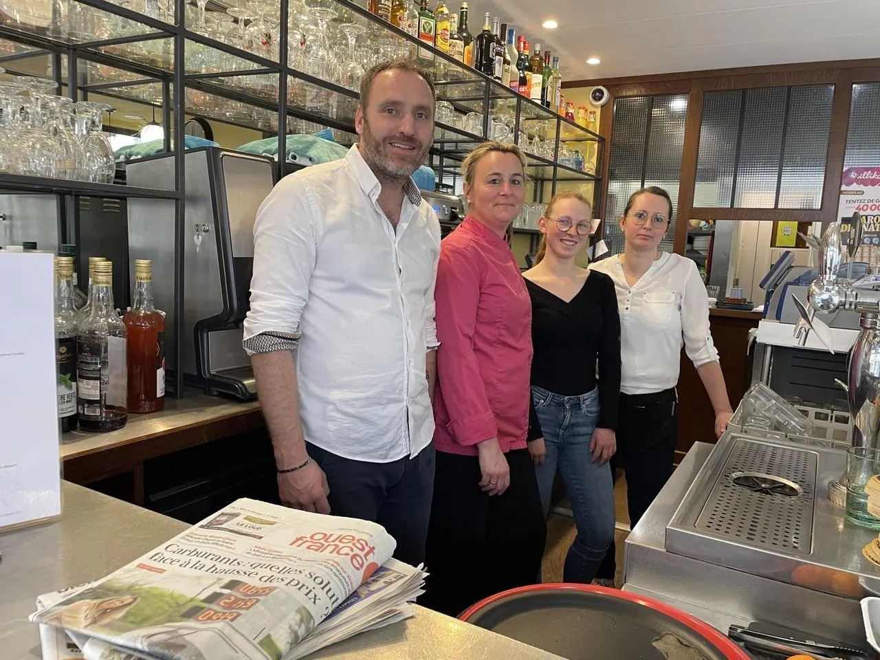 De gauche à droite : David et Emilie Fernagu, ainsi que les serveuses Justine et Adeline. Absent de la photo, Charly, apprenti cuisinier. © Ouest-France