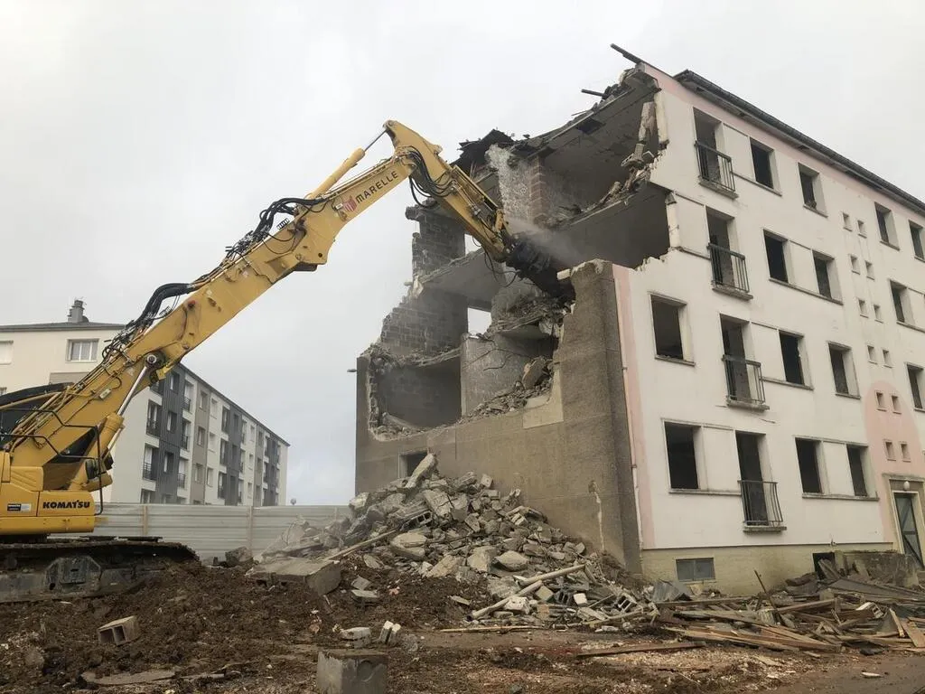 Au quartier Saint-Michel à Flers, dans l’Orne, 48 logements dans le bâtiment les Rubis ont été détruits, le 31 janvier 2023. © Archives Ouest-France