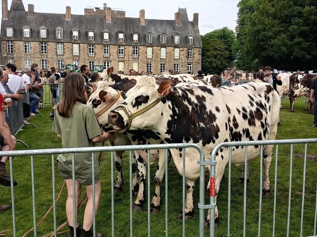 Une centaine d’animaux étaient présents samedi 31 mai 2025 dans le magnifique parc du château de Rânes (Orne) sous un soleil radieux. Plus de 700 visiteurs ont flâné au cours de la journée. Une vingtaine d’éleveurs ont présenté leurs plus beaux spécimens, préparés avec soins : bovins de race normande et prim’holstein, chevaux percherons, cobs normands, moutons et ânes ont ainsi participé au comice.