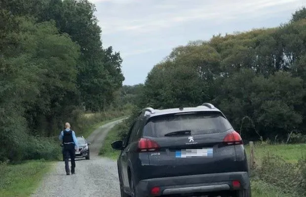 Le suspect de 34 ans et la jeune fille de 12 ans, faisant l’objet de l’alerte enlèvement déclenchée ce 25 septembre 2025 dans l’Orne, ont été retrouvés à proximité de ce chemin communal à Montbert, dans un sous-bois. © OUEST-FRANCE