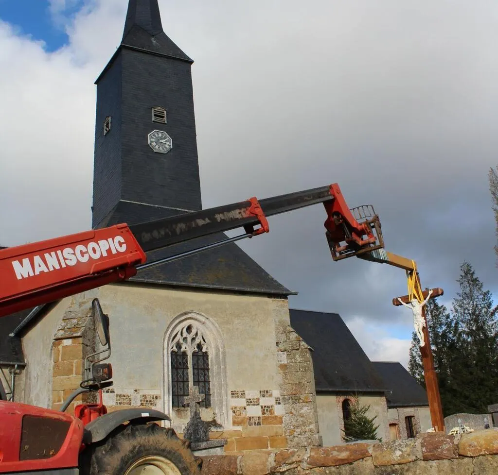 La croix du cimetière a fait l’objet d’une restauration totale par Philippe Marez, menuisier à Irai. © Ouest-France