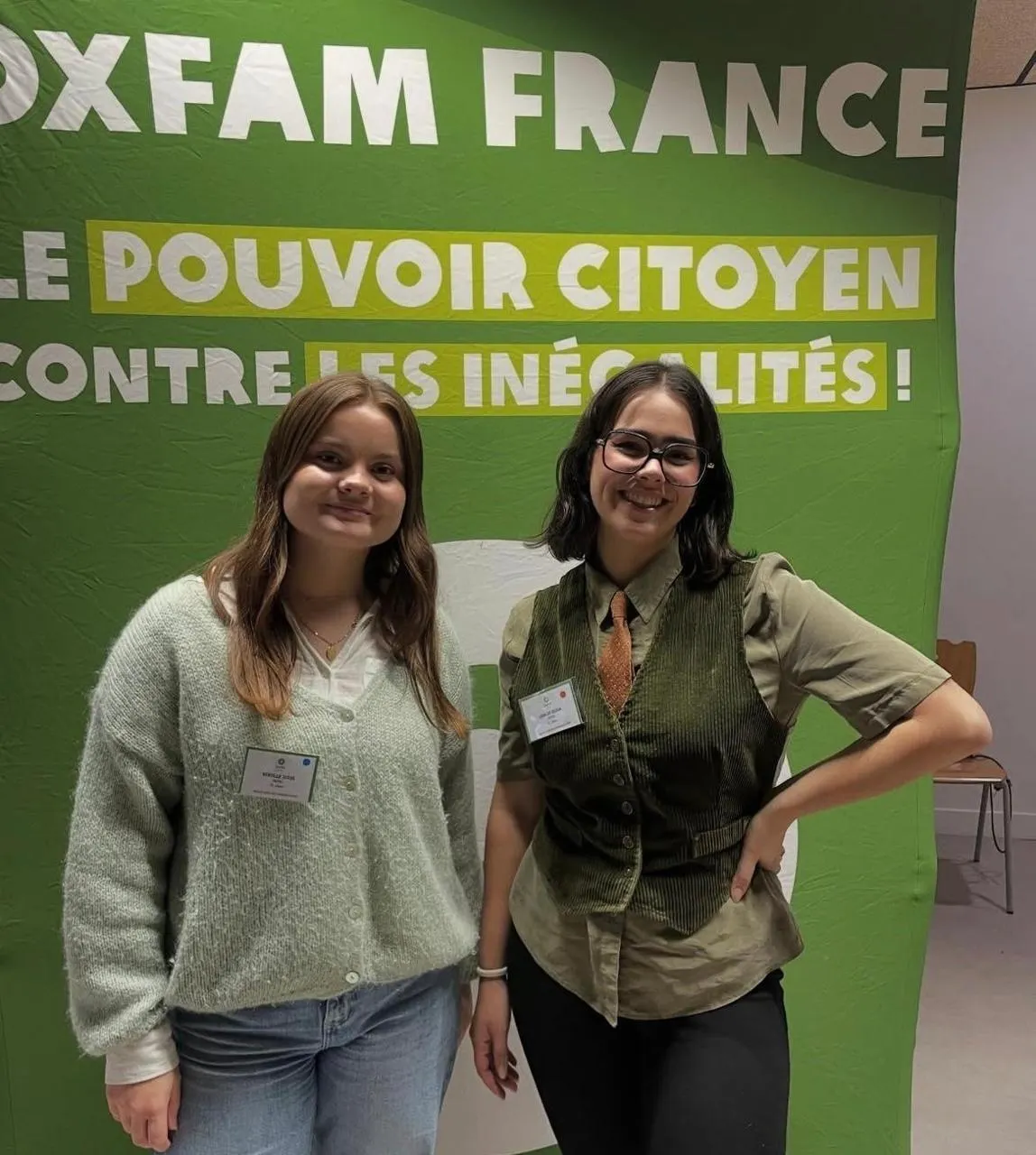 Léna de Sousa (à droite), ici avec une bénévole d’Oxfam, animera la discussion à l’issue de la projection du film au cinéma Lux de Caen (Calvados), jeudi 15 janvier 2026. © Oxfam