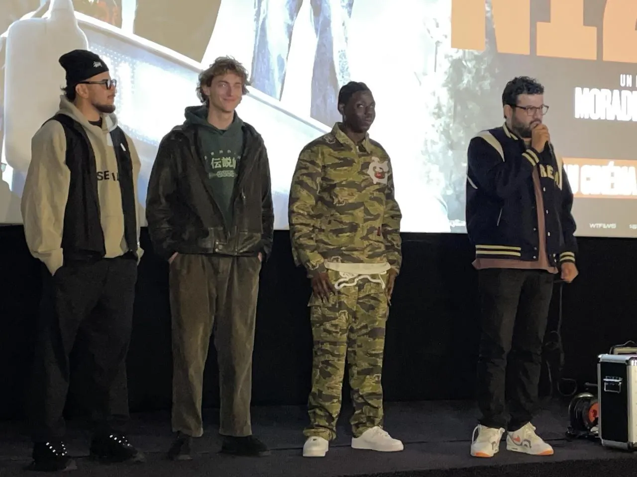 De gauche à droite : les trois acteurs principaux, Riadh Bellaïche, Gaspard Gévin Hié et Bakary Diombera, et le réalisateur, Morade Aïssaoui, ont dit leur plaisir de venir à Argentan, samedi 17 janvier 2026. © Ouest-France