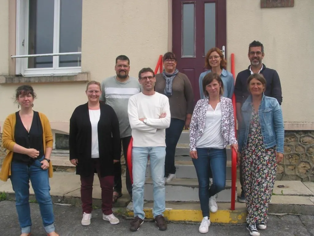 De gauche à droite : Chloé Hellec, Sandra Rion, Erny Goetz, Cédric Dubois, Sandrine Triola, Angélique Hébert, Mylène Auber, Hélène Dumesnil, Vincent Auber. © Ouest-France