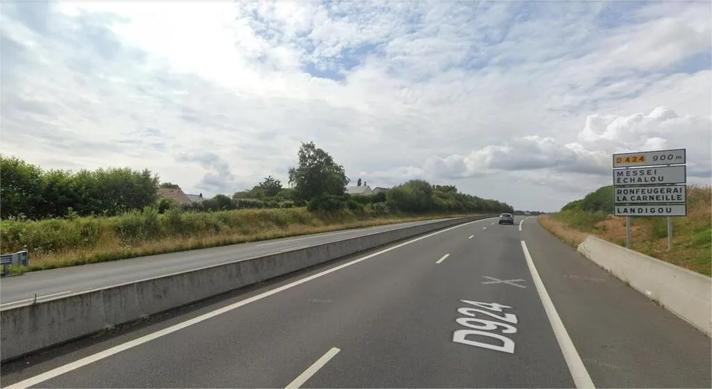 La RD924 déjà en service entre Flers et Argentan, à hauteur de Landigou (Orne). © Google Street View