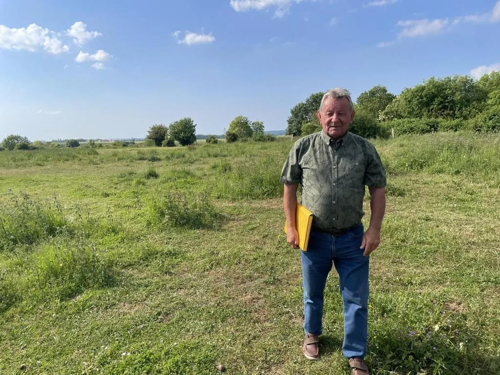 Le maire de Juvigny, Jean-Jacques Lahaye, sur la parcelle qui pourrait accueillir une centrale solaire aux portes d’Argentan. © Ouest-France