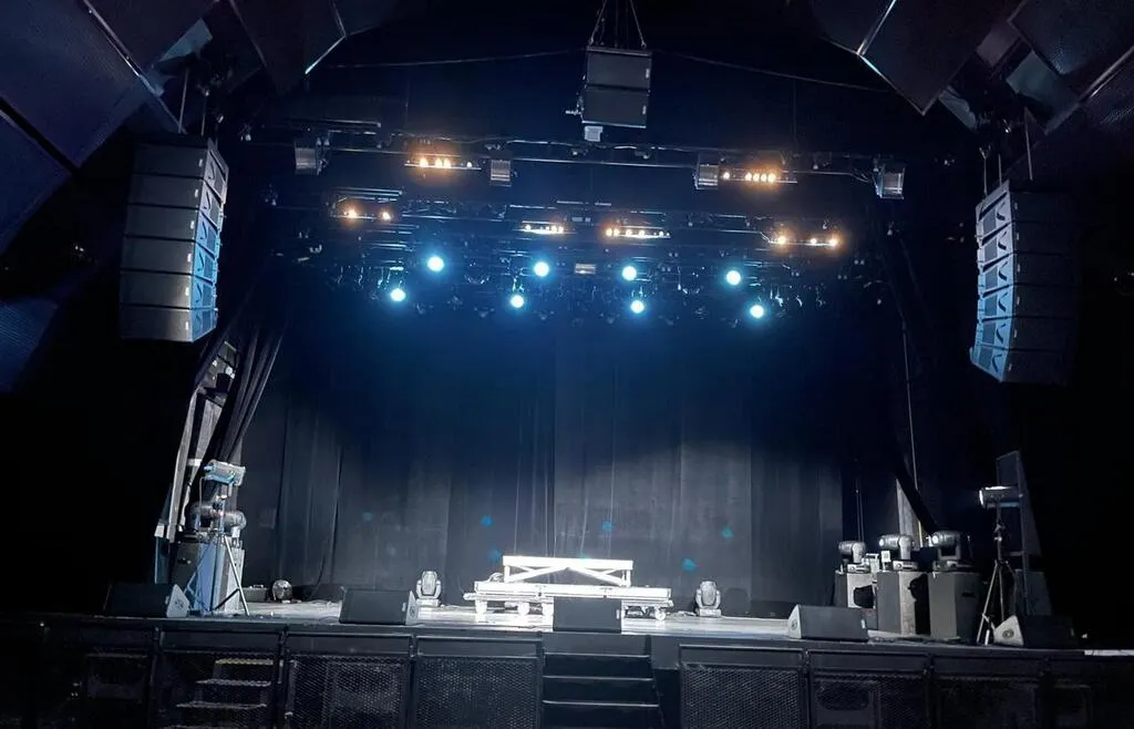 Sur la scène de la grande salle de La Luciole à Alençon, de nombreux équipements son, lumière et projection ont besoin d’être remplacés. © La Luciole