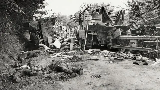 Les Allemands pris au piège de la Poche ne se laissent pas abattre et mènent une contre-attaque sur Chambois le 20 août. Le « couloir de la mort » entre le pont de Saint-Lambert et le gué de Moissy est bombardé sans relâche par l'aviation alliée.