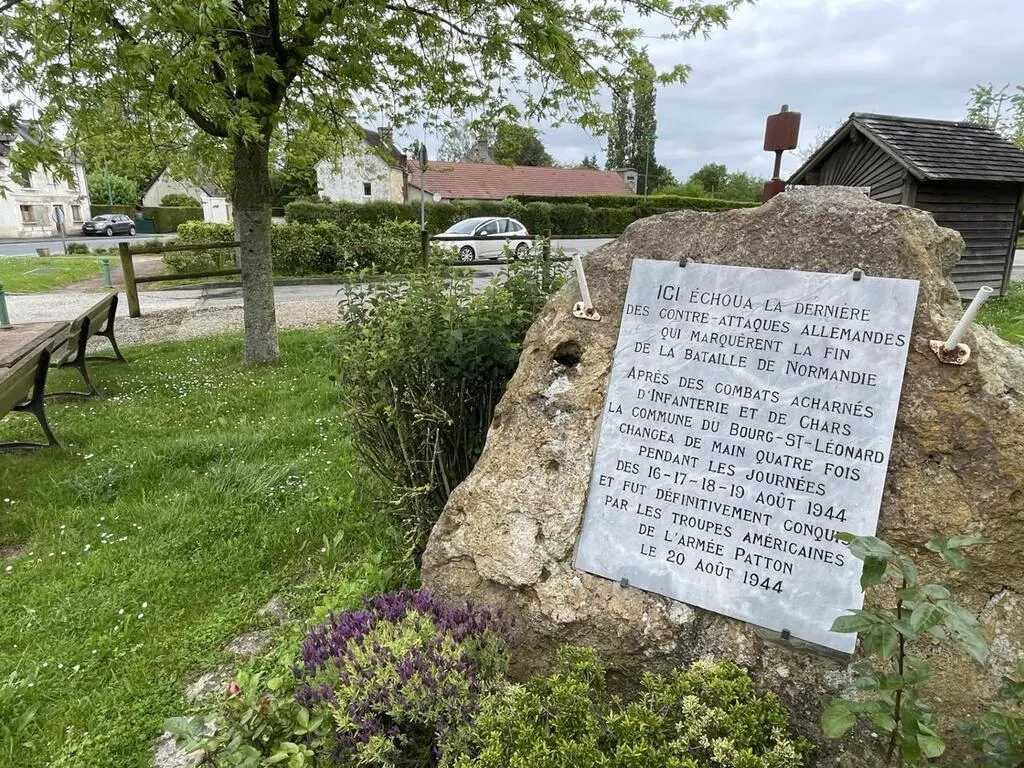 « Après des combats acharnés d’infanterie et de chars, la commune du Bourg-Saint-Léonard changea de main quatre fois pendant les journées des 16-17-18-19 août 1944 et fut définitivement conquise par les ...