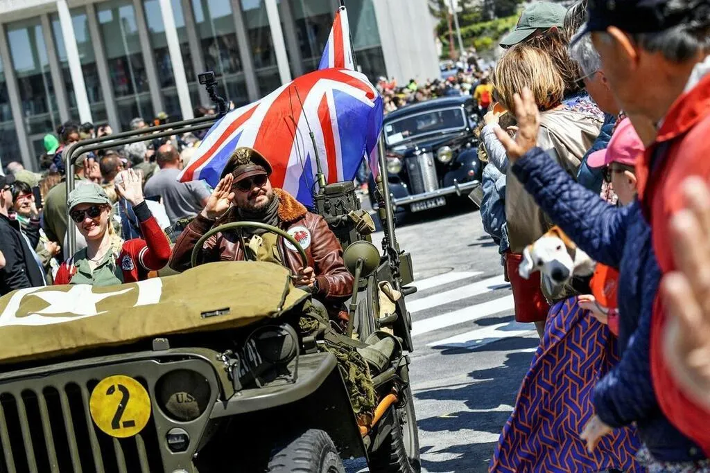 Dans les rues d’Arromanches, une parade de véhicules militaires dans le cadre du 79e anniversaire du Débarquement en juin 2023 © archives Ouest-France/Martin ROCHE