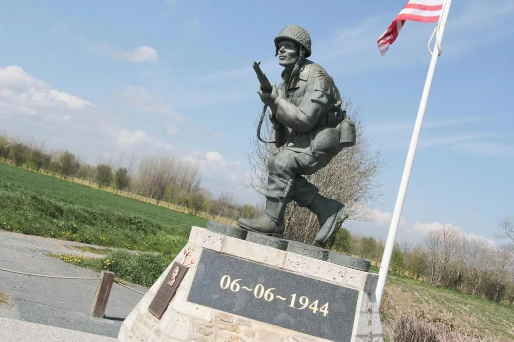 De nombreuses cérémonies et commémorations vont mettre en valeur les monuments de la région. Ici, le monument Winters, à Sainte-Marie-du-Mont, sur la route d’Utah-Beach. Archives Michel Coupard, Ouest-France
