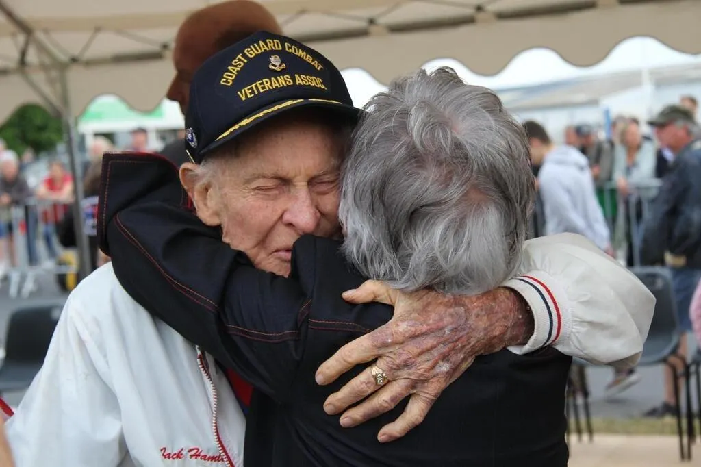 Isigny-sur-Mer (14) : Inauguration d’une stèle sur le lieu du crash de l’avion du pilote américain Chester G. Ulrich.