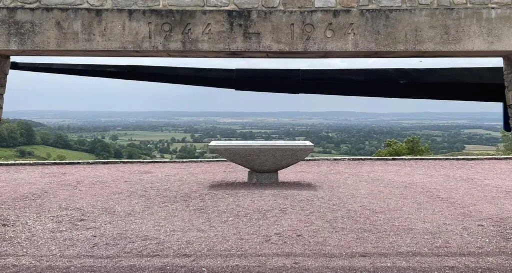 De là -haut, difficile de s’imaginer l’âpreté des combats qui firent rage dans ce paisible paysage normand. Niché sur une colline surplombant la poche de Falaise-Chambois, le mémorial de Montormel (Orne) permet de contempler depuis une terrasse monumentale le site sur lequel se joua une des batailles décisives de la Seconde Guerre mondiale.