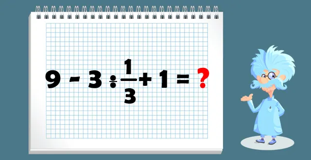 La première difficulté est de prendre en compte la règle d'ordre des calculs d'une opération quand celle-ci ne comporte pas de parenthèse. Et cette règle dit que les divisions et multiplications doivent être effectuées avant les additions et soustractions. L'opération 3 : 1/3 doit donc être résolue en premier, et l'opération 9 - 3 ne doit pas être effectuée.