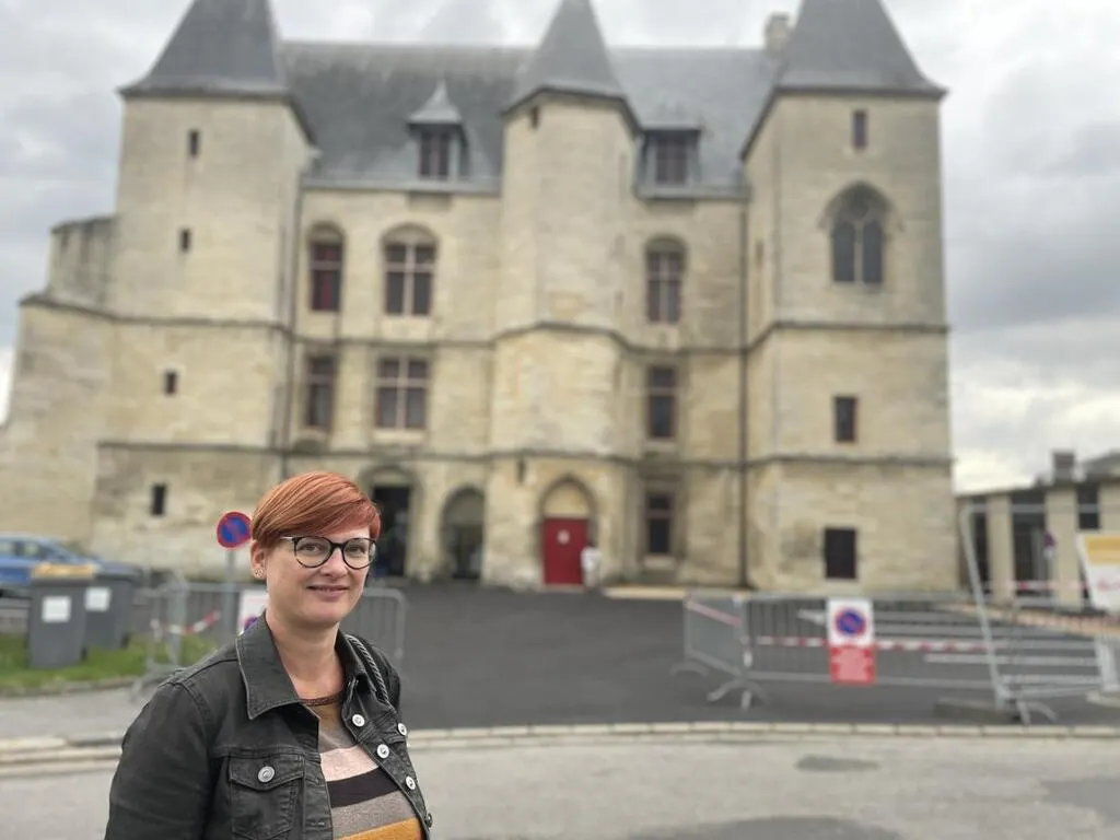Nadège Bretonnet, médiatrice du patrimoine, devant le logis ducal qui sert de palais de justice à Argentan depuis 1827. © Ouest-France