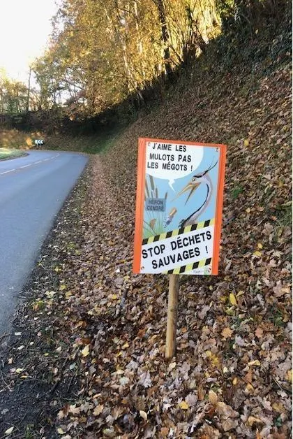 Les slogans choisis sont simples et efficaces : « j’aime les mulots par les mégots », pour le héron cendré ou « J’aime les moustiques pas le plastique » pour la truite fario. Visibles le long de cinq routes, à l’instar de celle de Caligny et celle de Montsecret, les neuf panneaux ont été installés par des membres du conseil municipal.