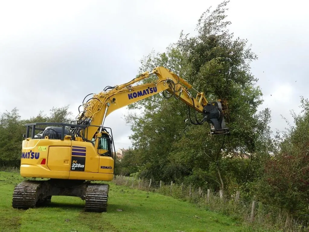 À Corbon (Orne), un sécateur géant est utilisé pour couper les arbres malades et les éloigner de la rivière. © Ouest-France