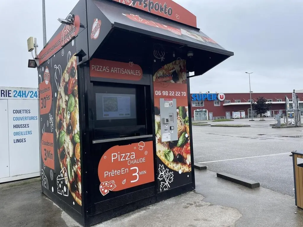 Un des distributeurs de pizzas sur le parking du Super U à Alençon (Orne). © Ouest-France