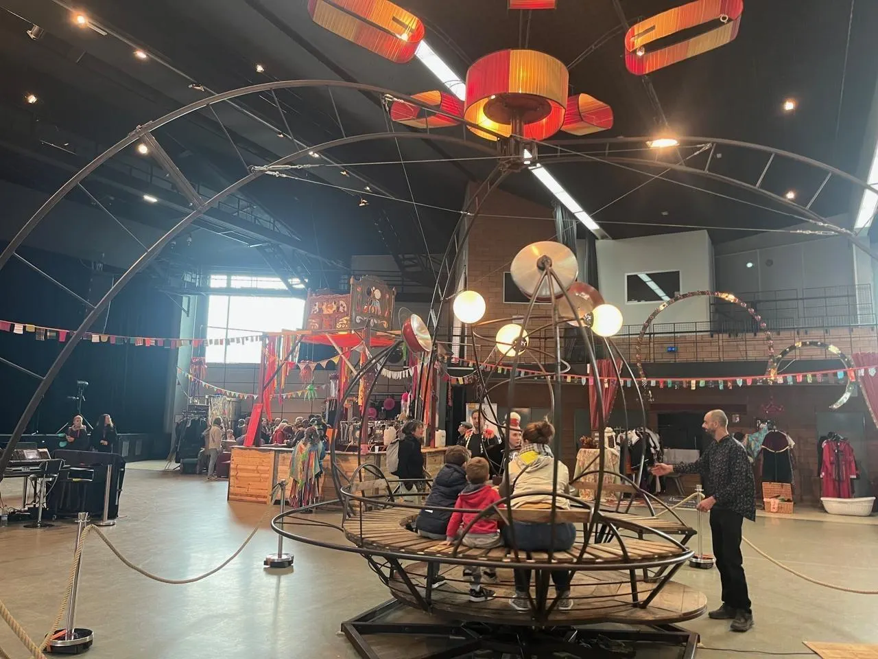 Un manège à activation humaine a pris place à l’intérieur du Forum de Flers à l’occasion du Festival de la récup’, une Å“uvre signée Nicolas Pradal. © Ouest-France