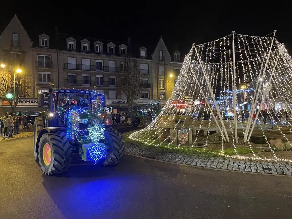 Une quinzaine de tracteurs parés de décorations de noël ont défilé dans le centre-ville de Flers, dans l’Orne, ce vendredi 23 décembre 2022. Ouest-France