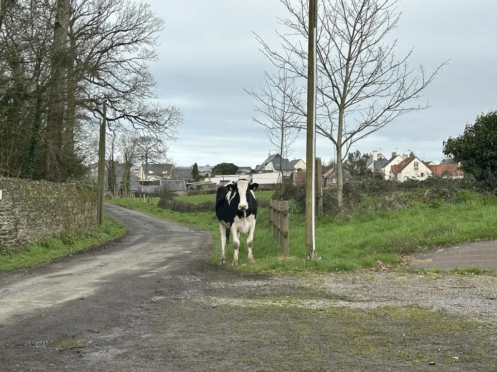Une invitée surprise bloque le passage : une vache blanche et noire. Une habitante arrive au pas, en voiture, et lâche : Elle a dû s’échapper. Elle appartient à l’agriculteur là-bas, je vais le prévenir, sourit-elle avant de redémarrer. La vache reprend sa route, escortée par l’automobiliste.