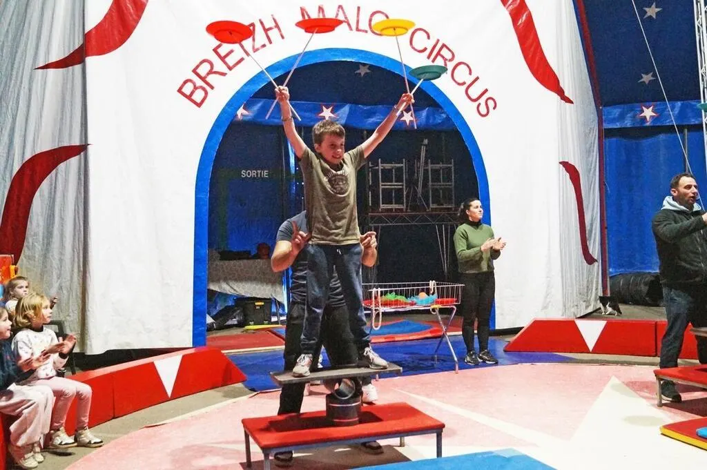 Les circassiens du Breiz Malo Circus ont dressé leur chapiteau qui trône fièrement dans la cour de l’école Saint-Joseph pendant une quinzaine de jours.