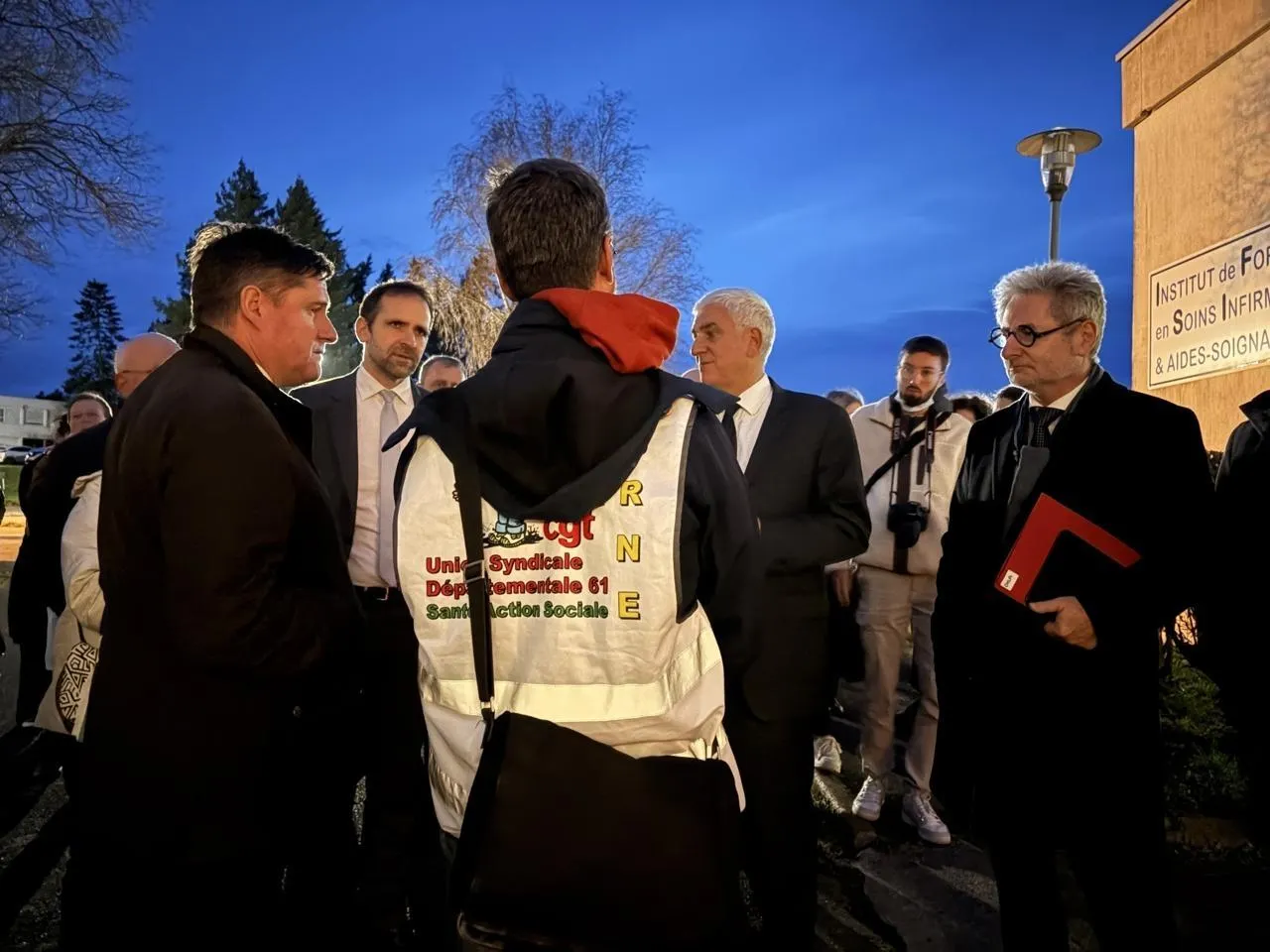 Ce jeudi 18 décembre 2025, élus et représentants de l’État et de l’ARS ont visité le centre hospitalier de L’Aigle (Orne) avant de présenter avec satisfaction le projet de réhabilitation de l’établissement qui n’a pas vécu de travaux depuis un demi-siècle. Sous les couleurs de la CGT, une quarantaine d’agents et de soignants attendaient les autorités pour leur signifier leur inquiétude, notamment due à des suppressions de poste.
