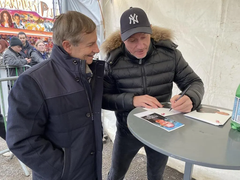 Après une longue séance d’autographes, Pascal Soetens a fait le tour de la fête foraine, aussi à l’aise avec les clients qu’avec les forains.