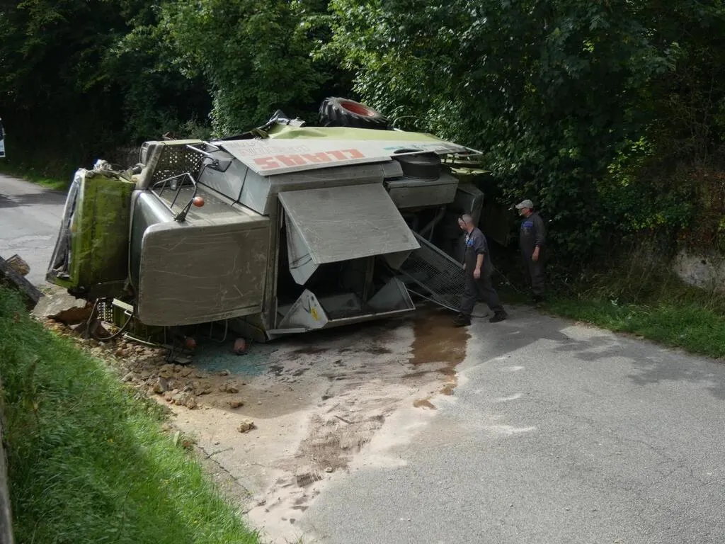 À Longny-au-Perche, une moissonneuse-batteuse a percuté le mur du cimetière et s’est renversée... |