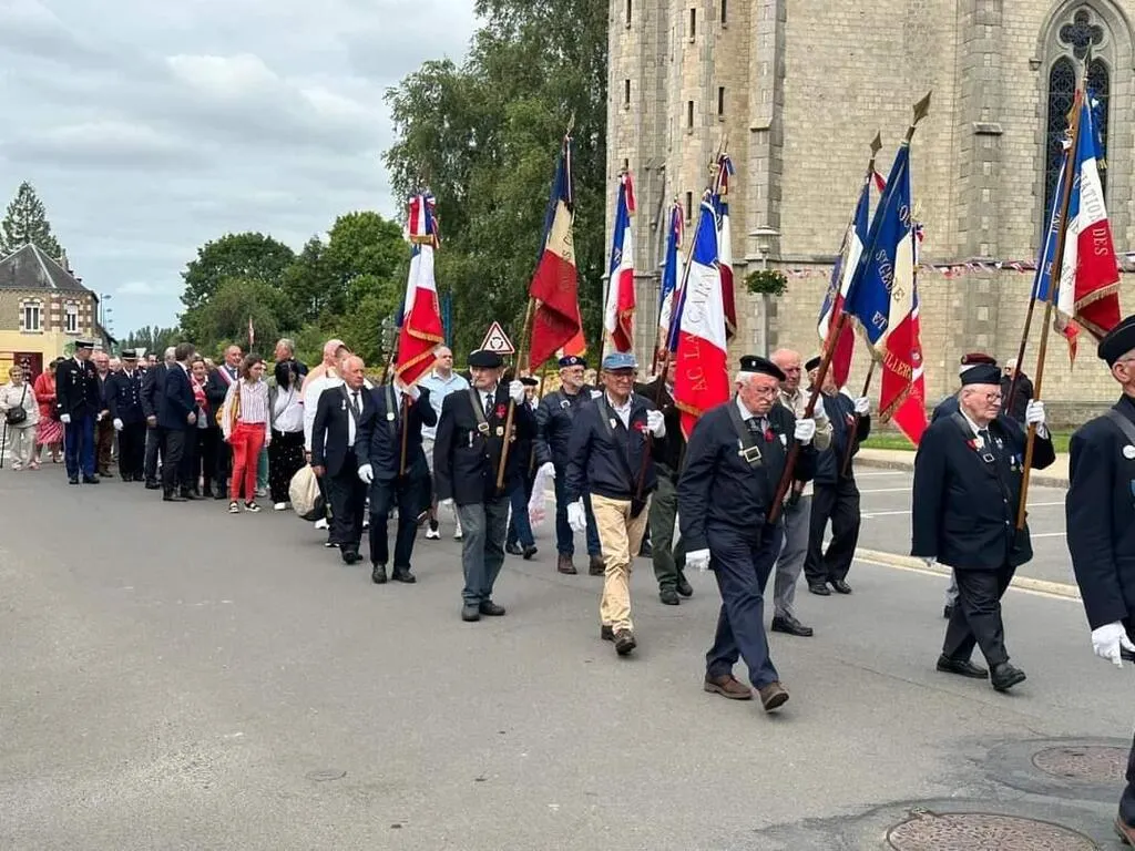 Des centaines d’habitants, des porte-drapeaux, quinze véhicules d’époque, la fanfare de Messei… Un important cortège s’est réuni à Saint-Georges-des-Groseillers (Orne), dimanche 23 juin 2024. Après une cérémonie religieuse, il a défilé dans les rues de la commune, 80 ans après la mort de quinze soldats canadiens et trois civils français dans une attaque des Alliés. Trois familles descendantes des victimes, venues spécialement du Canada, ont assisté aux commémorations.