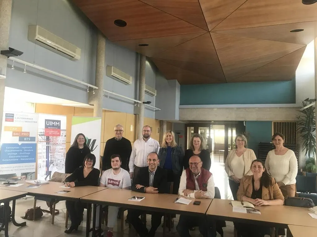Membres de l’UIMM, élus et dirigeants d’entreprises étaient présents début avril, dont (assis) Aline Hubert, Ronan Vauvert, Didier Morellon, Lucien Bazin, Sarah Niccolini ; (debout), Lavinia Bedenes, Angel Perea, Yohann Rizy, Eva Siemieniako, Séverine Prodhomme, Aline Josse? et Nathalie Catelain. © Ouest-France