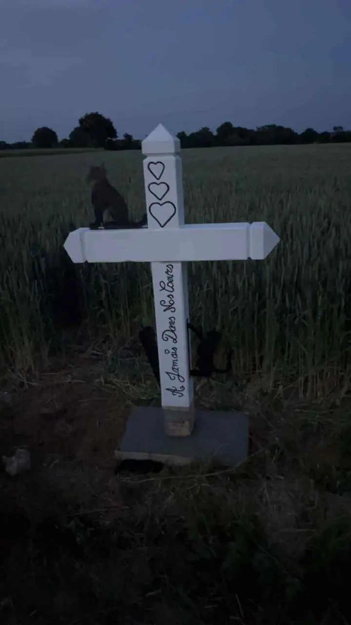La croix érigée en hommage à Florine Tessier, tuée dans un accident de la route le 3 janvier 2025 à La Chapelle-Viel, avait été installée samedi 31 mai, dans la soirée. © Photo fournie par la famille