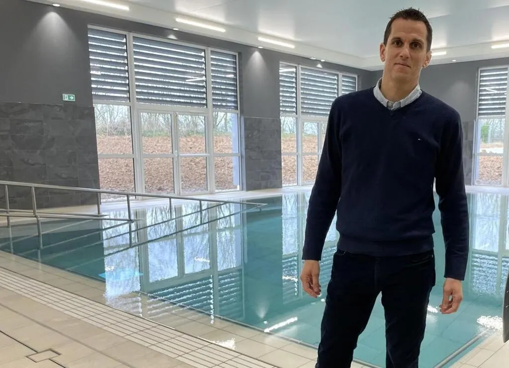 Fabien Lambert devant la piscine de l’espace balnéo du centre de rééducation de Damigny. © Ouest-France