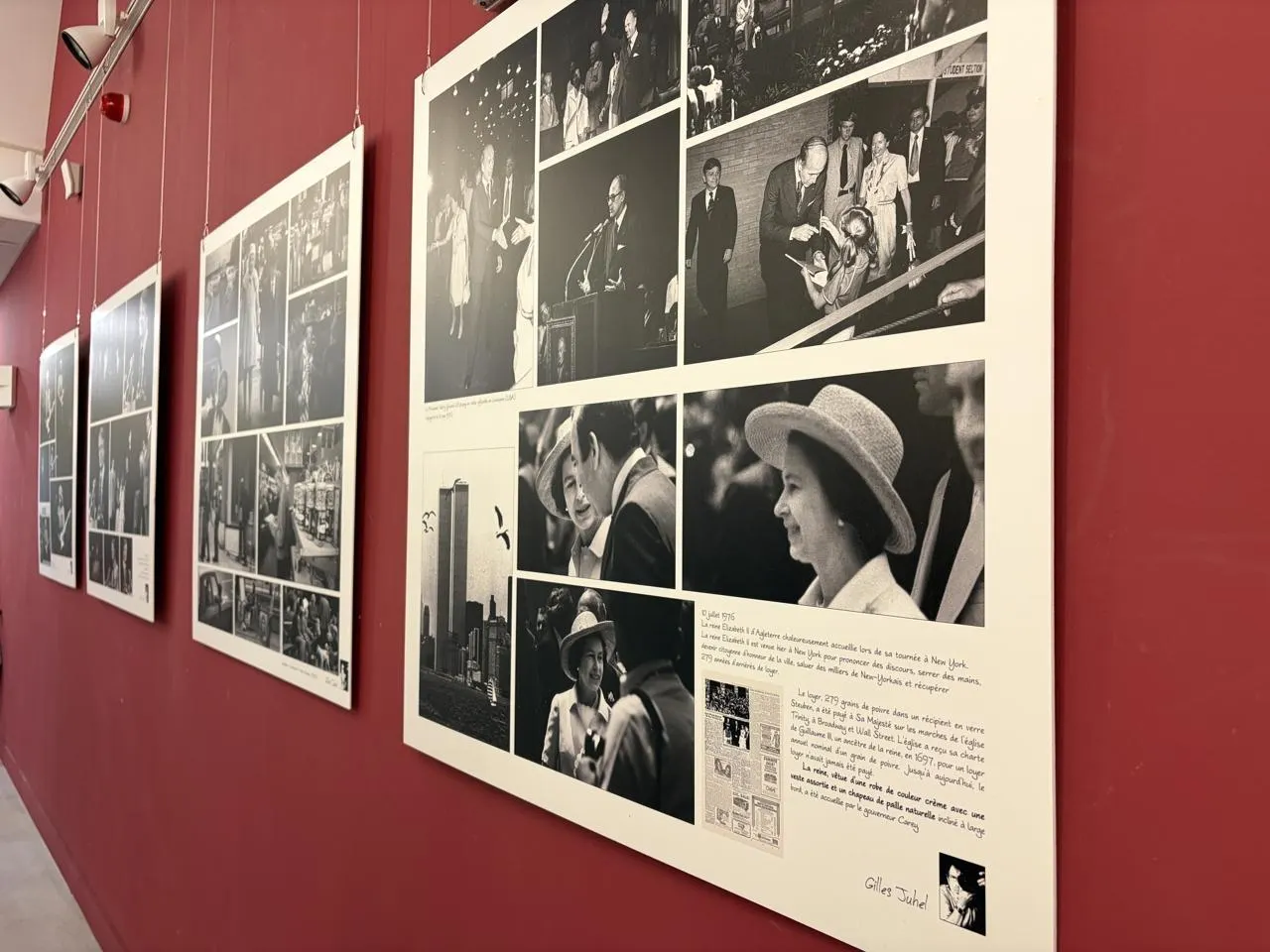 Chaque panneau de 100 cm sur 100 cm raconte une histoire. Là un meeting de Jimmy Carter en 1976 avant qu’il devienne président, ici la venue de la reine Elizabeth II à New York la même année, et puis, plus loin, comme pour espacer le temps, la Fashion Week de Barcelone et les portraits de onze réfugiés, tous deux réalisés en 2017.
