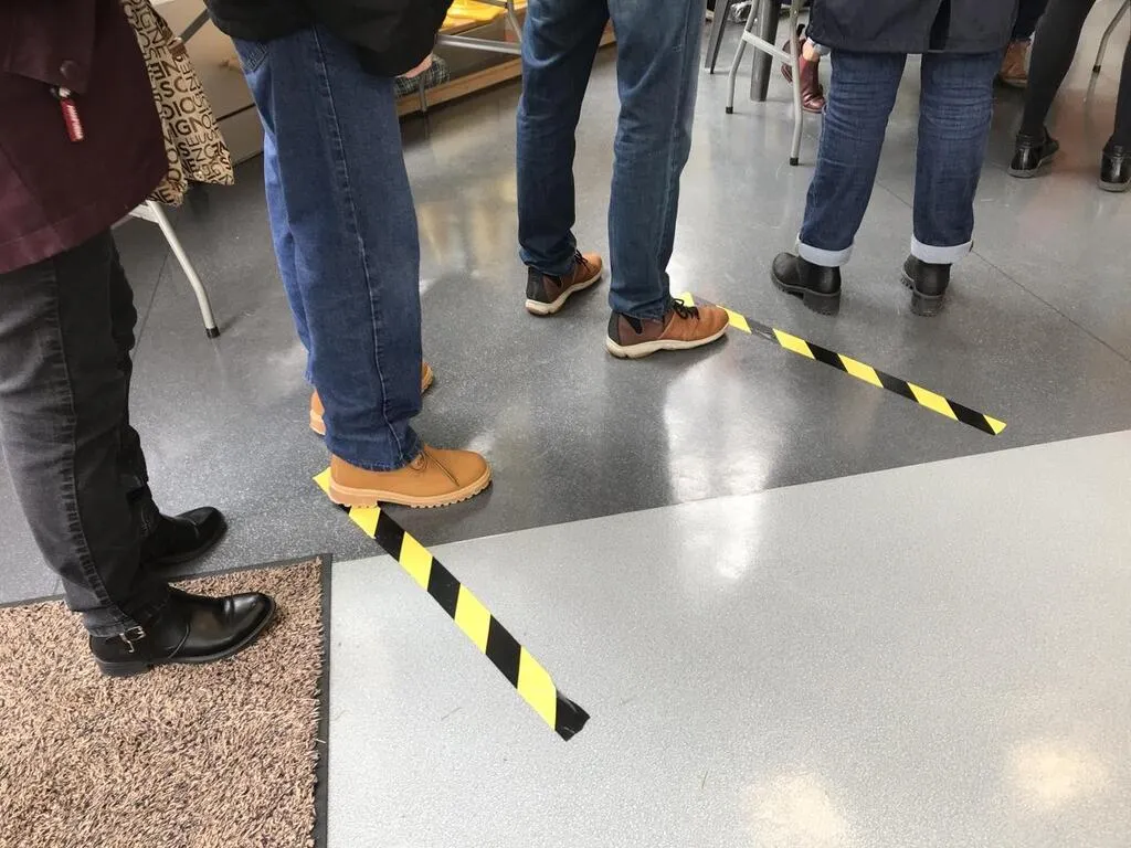 8 h 30. Bureau de vote de la Pyramide. Édouard arrive masqué. Atteint de la maladie de Lyme, il ne veut prendre aucun risque mais a fait le choix de venir voter. Au sol, du ruban adhésif pour indiquer les distances de sécurité à respecter entre les votants.