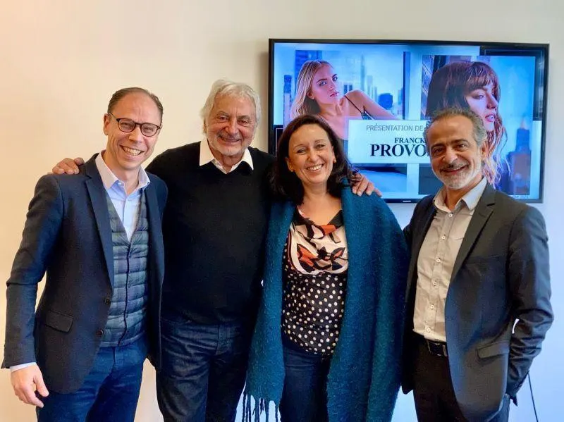 Franck Provost et Sandrine Tessier entourés de Franck Delamotte, directeur du réseau des salons Franck Provost et Alfonso Baio, chargé de développement. DR