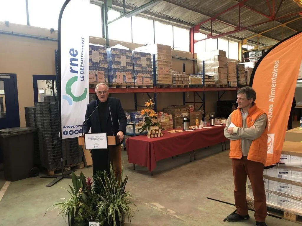Le président du Conseil départemental de l’Orne, Christophe de Balorre, a remis cent pots de miel à la banque alimentaire, jeudi 16 février 2023. Une démarche symbolique en forme de soutien à cet acteur clé de la solidarité dans le département.